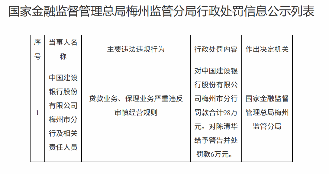 京海策略 中国建设银行梅州市分行因贷款业务、保理业务严重违反审慎经营规则被罚款98万元 京海策略 来源:恒越配资APP下载 网站:香港大牛证券官网 日期:2026-02-13 09:04:46 查看:101